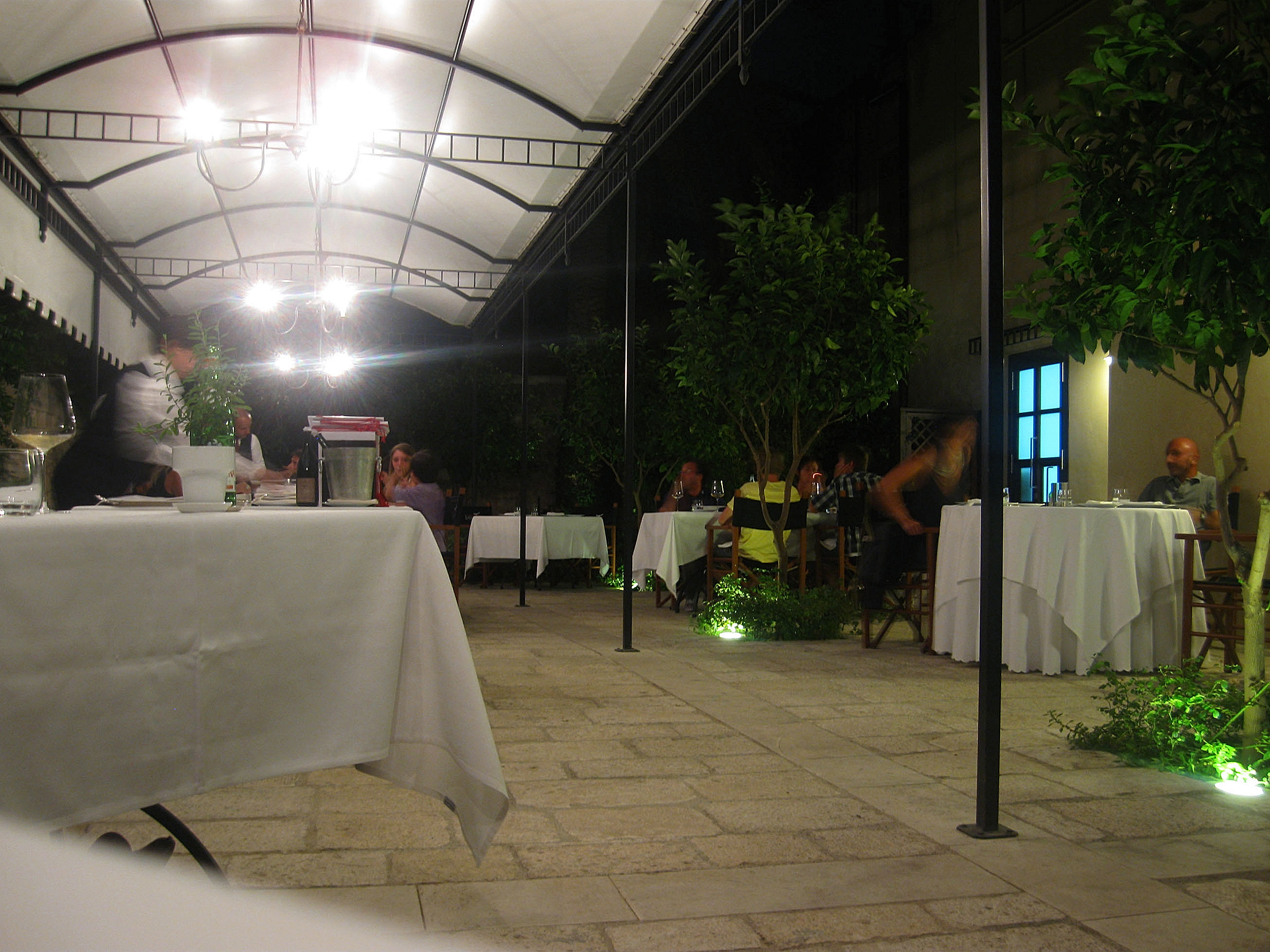 Ospitato all’interno dell’elegantissimo Palazzo Failla, il ristorante durante la bella stagione accoglie i commensali in un ameno e fresco dehors estivo, sicuramente più suggestivo della comunque elegante saletta interna. La carta è ricca, due percorsi degustativi, uno creativo, l’altro tradizionale che, come vedremo nel corso della cena, si rivelerà solo evocativo della tradizione siciliana.